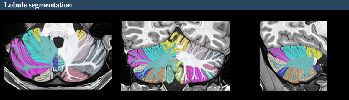 DeepCERES is a state-of-the-art deep learning pipeline that generates ultra-high-resolution (0.125 mm³) cerebellar lobule segmentations starting from a standard-resolution T1 MRI. The method synthesizes a T2-weighted image and performs super-resolution on both modalities to output detailed, fine-grained cerebellar segmentation maps.